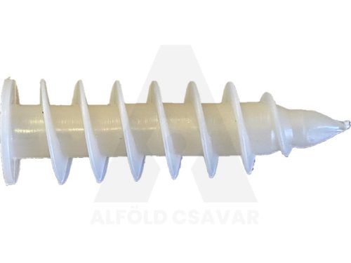 A műanyag polisztirol dübel, amelyet a szaknyelvben gyakran spiráldübelként is emlegetnek, a hőszigetelő lapok speciális rögzítőeleme. Különlegessége a rendkívül széles és éles, menetvágó kialakítás, amely lehetővé teszi, hogy a dübelt közvetlenül a puha szigetelőanyagba, például EPS vagy XPS lapokba hajtsák be anélkül, hogy előfúrásra lenne szükség. Ez a megoldás azért rendkívül hatékony, mert a széles menetek nagy felületen kapaszkodnak meg a polisztirol szemcséi között, így stabil alapot biztosítanak a facsavarok számára anélkül, hogy megsértenék a homlokzati szigetelés folytonosságát vagy hőhidat hoznának létre. Elsősorban könnyebb tárgyak, például kültéri lámpák, házszámok, mozgásérzékelők vagy postaládák esztétikus és gyors rögzítésére szolgál, ahol a terhelés nem éri el a hőszigetelő rendszer szakítószilárdságának határát.