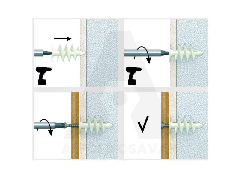 A műanyag polisztirol dübel, amelyet a szaknyelvben gyakran spiráldübelként is emlegetnek, a hőszigetelő lapok speciális rögzítőeleme. Különlegessége a rendkívül széles és éles, menetvágó kialakítás, amely lehetővé teszi, hogy a dübelt közvetlenül a puha szigetelőanyagba, például EPS vagy XPS lapokba hajtsák be anélkül, hogy előfúrásra lenne szükség. Ez a megoldás azért rendkívül hatékony, mert a széles menetek nagy felületen kapaszkodnak meg a polisztirol szemcséi között, így stabil alapot biztosítanak a facsavarok számára anélkül, hogy megsértenék a homlokzati szigetelés folytonosságát vagy hőhidat hoznának létre. Elsősorban könnyebb tárgyak, például kültéri lámpák, házszámok, mozgásérzékelők vagy postaládák esztétikus és gyors rögzítésére szolgál, ahol a terhelés nem éri el a hőszigetelő rendszer szakítószilárdságának határát.