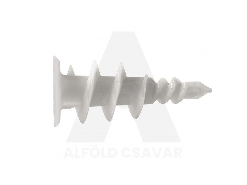A spirálmenetes műanyag gipszkarton tipli, közismertebb nevén a gipszkarton dűbel, az egyik leggyorsabb rögzítési megoldást kínálja vékony falemezek és gipszkarton lapok esetén. Különlegessége a testen végigfutó széles, éles spirálmenet, amely lehetővé teszi, hogy a dűbel közvetlenül, előfúrás nélkül vagy csak egy minimális pontozás után behajtható legyen a puha gipszmagba. A behajtás során a széles menetek nagy felületen kapaszkodnak meg az anyagban, így stabil alapot teremtenek a facsavar számára anélkül, hogy a lap hátoldalán nagyobb roncsolást végeznének. Leginkább könnyebb tárgyak, például képek, kábelcsatornák vagy kisebb kapcsolók rögzítésére ideális, mivel a tartóereje a gipszkarton saját szilárdságától függ. Bár rendkívül kényelmes és gyors, fontos tudni, hogy csak a lapvastagságon belül fejt ki tartóerőt, ezért nehezebb polcokhoz vagy dinamikus terheléshez már érdemesebb más, szétnyíló megoldást választani.