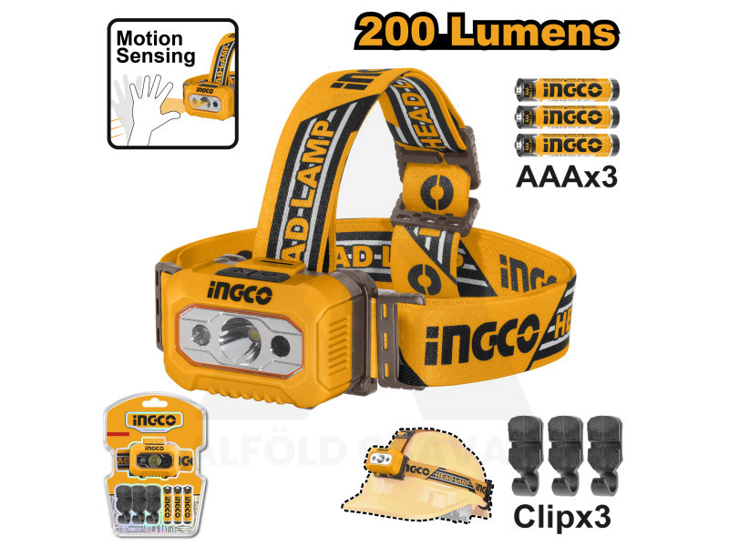 Fejlámpa 200 Lumens+elem INGCO