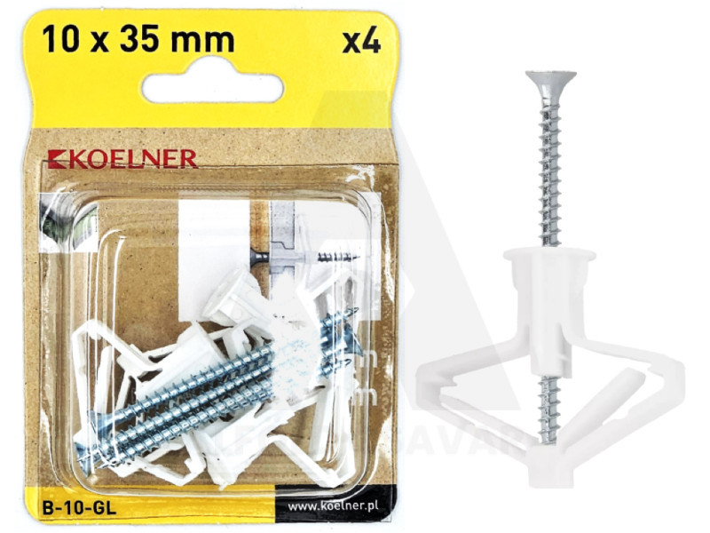 Gipszkarton dübel+csavar 10x35mm 4db-os