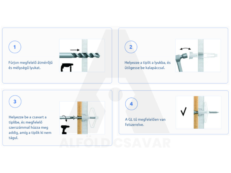 A szárnyas műanyag gipszkarton dübelek a közepes súlyú tárgyak rögzítésének specialistái, amelyek kifejezetten az üreges szerkezetek, például gipszkarton lapok vagy farostlemezek sajátosságaihoz idomulnak. Működési elvük a mechanikai alakzáráson alapul: a dübel testén található rugalmas szárak vagy szárnyak a furatba helyezéskor összecsukódnak, majd a lemez mögötti üregbe érve szétnyílnak. Amikor a csavart behajtjuk a dübelbe, az a szárnyakat nekinyomja a gipszkarton hátsó felületének, így a terhelés nem csupán a furat peremére, hanem egy jóval nagyobb felületre oszlik el. Ez a megoldás jelentősen nagyobb stabilitást és teherbírást garantál a spirálmenetes tiplikkel szemben, mivel megakadályozza a dübel kiszakadását a puha gipszmagból. Elsősorban falikarok, nehezebb tükrök, kisebb polcok vagy konyhai kiegészítők biztonságos felszereléséhez ajánlottak, ahol a hátfalhoz való biztos kikötés elengedhetetlen.