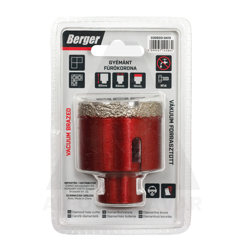Gyémánt koronafúró 50x60xSH10mm/M14 Berger