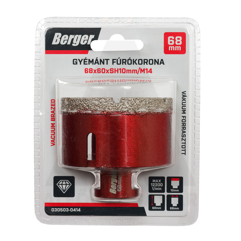 Gyémánt koronafúró 68x60xSH10mm/M14 Berger