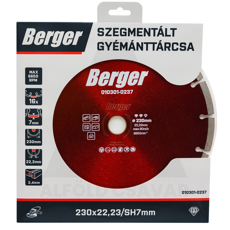 Gyémánttárcsa szegmenses 230x22.23/SH7mm BERGER