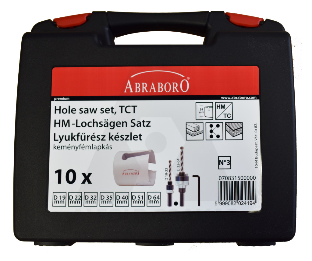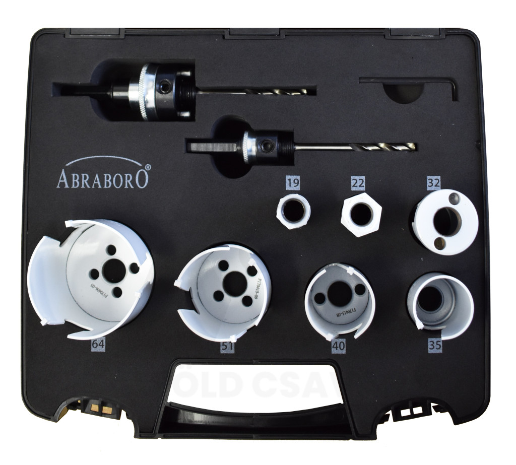 Lyukfűrész készlet 10 db-os 19-64mm/adapter/HEXKEY