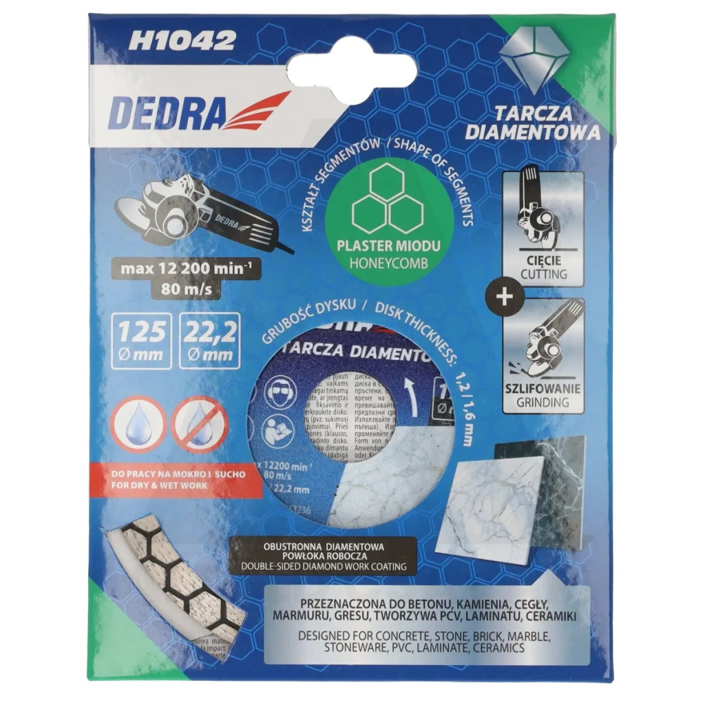 Vágókorong, Gyémánt, 125mm, méhsejt forma DEDRA